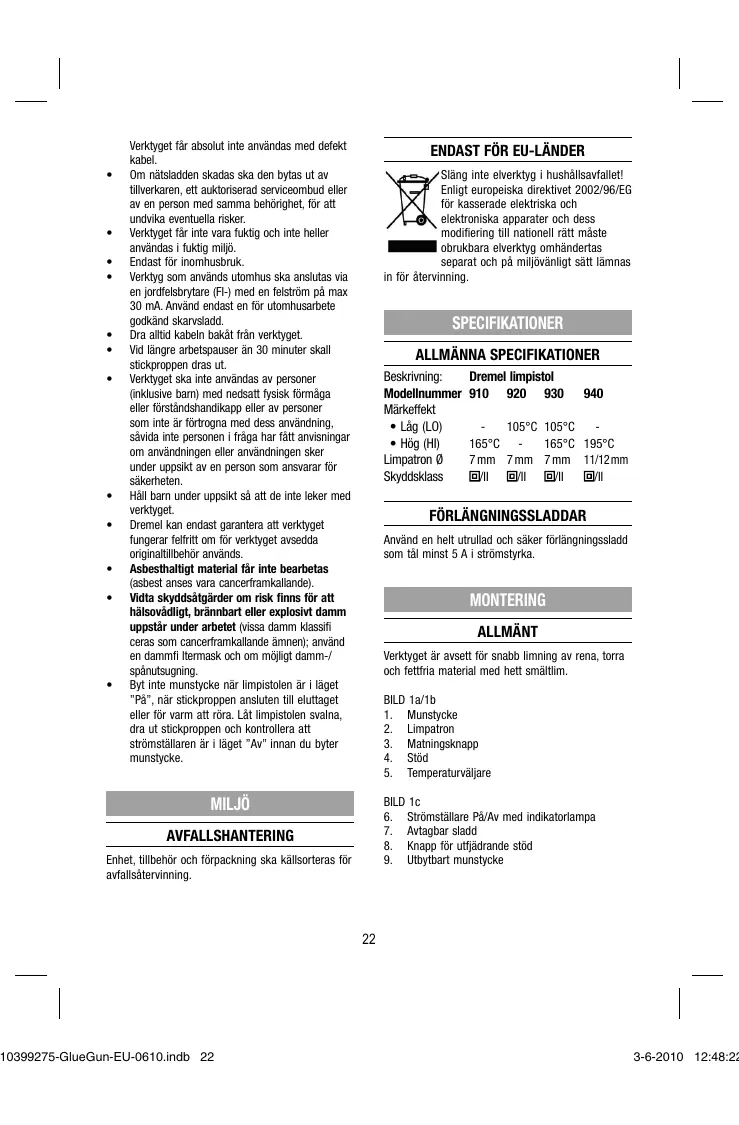 BRUKSANVISNING GLUE GUN 910 DREMEL