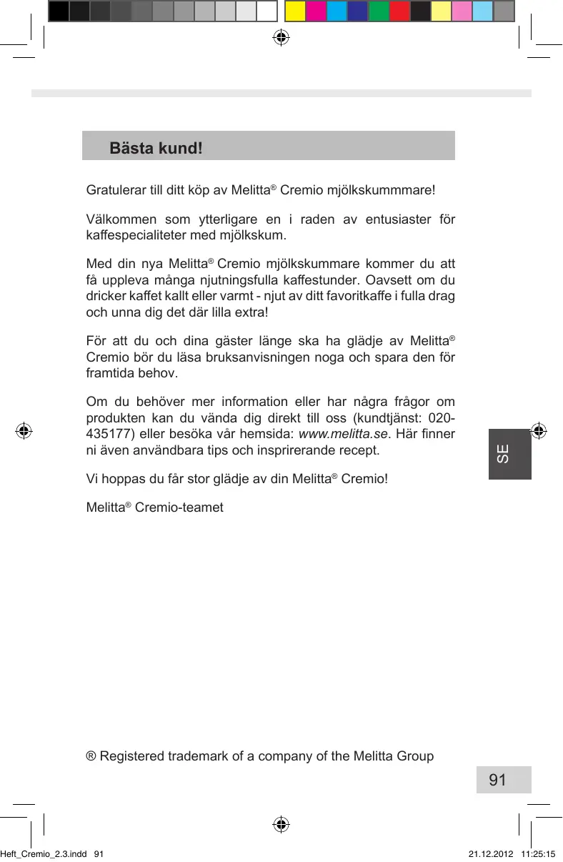BRUKSANVISNING CREMIO MELITTA