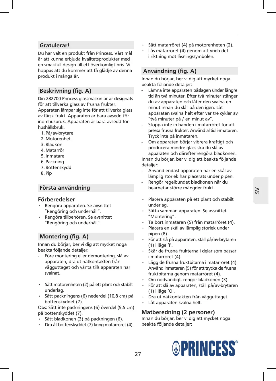 FR Vous avez acheté un produit Princess. Nous souhaitons vous proposer des produits de qualité associant un design raffiné et des prix accessibles. Nous espérons que vous profiterez longtemps de ce produit.