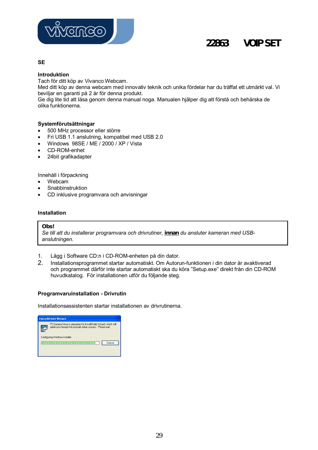 BRUKSANVISNING WEBPHONE SET WEBCAM VIVANCO