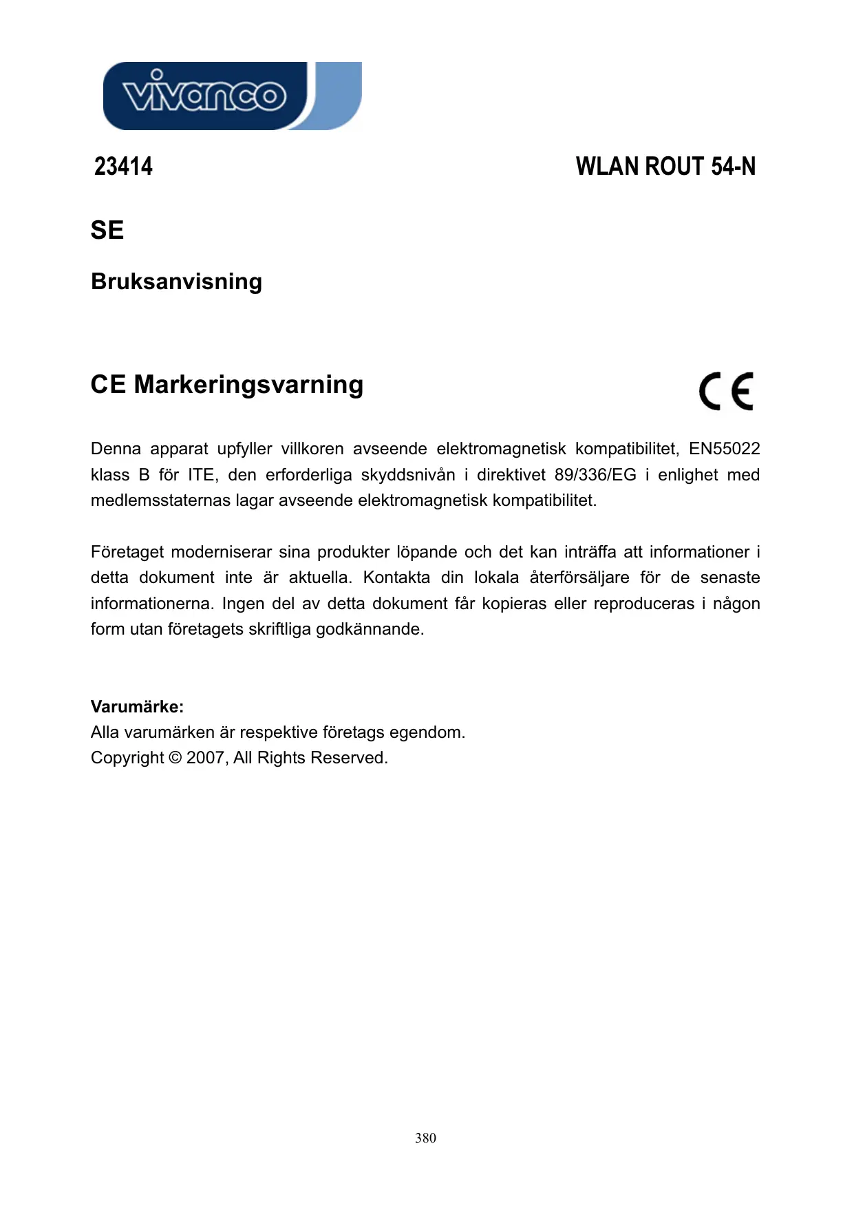 BRUKSANVISNING WLAN ROUT 54-N VIVANCO