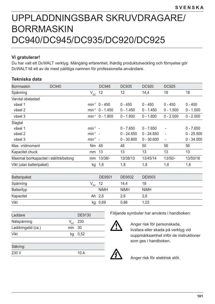 Hitta enhetens manual gratis DC935KB DEWALT i PDF-format.