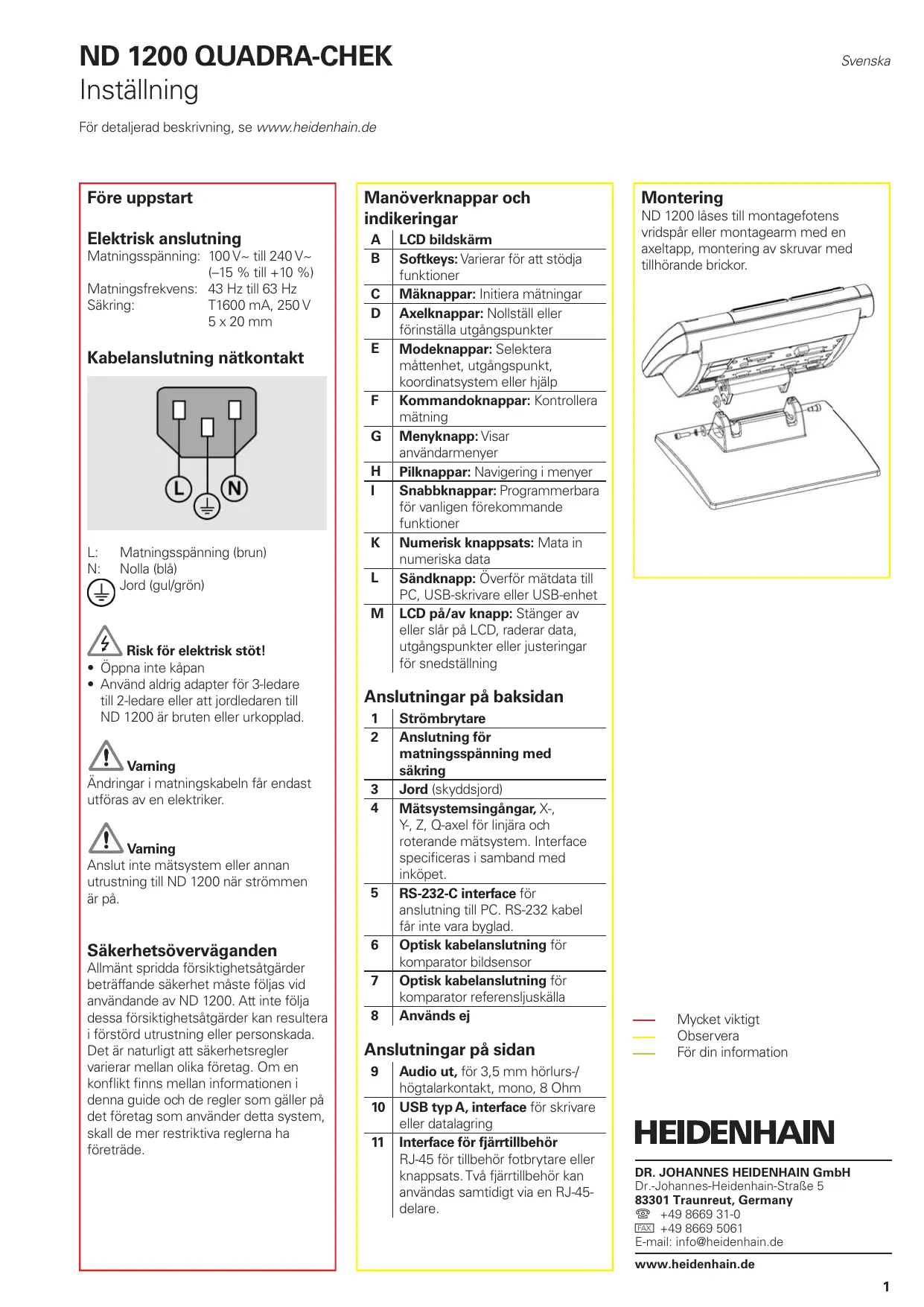BRUKSANVISNING ND 1200 HEIDENHAIN