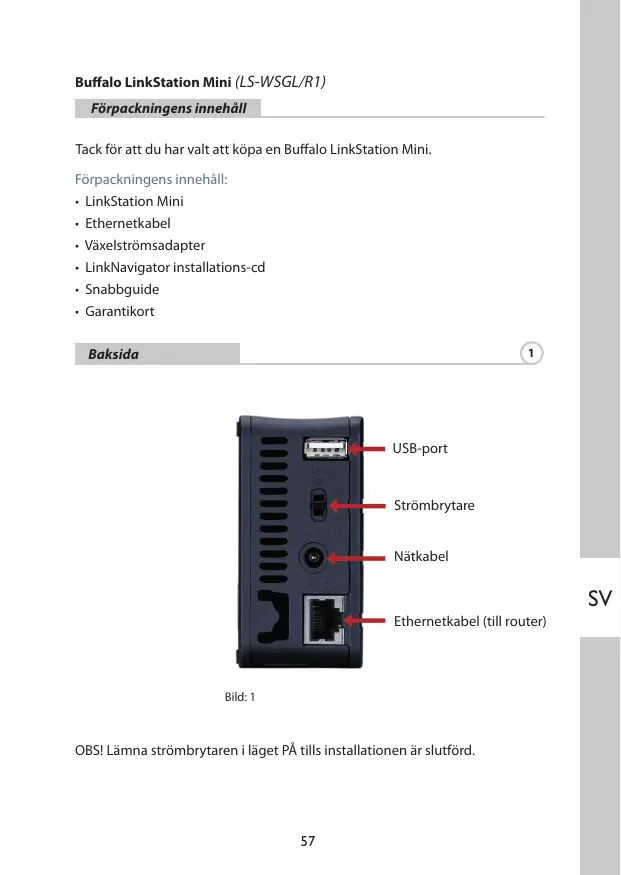 Tack for att du har valt att kopa en Buffalo LinkStation Mini.