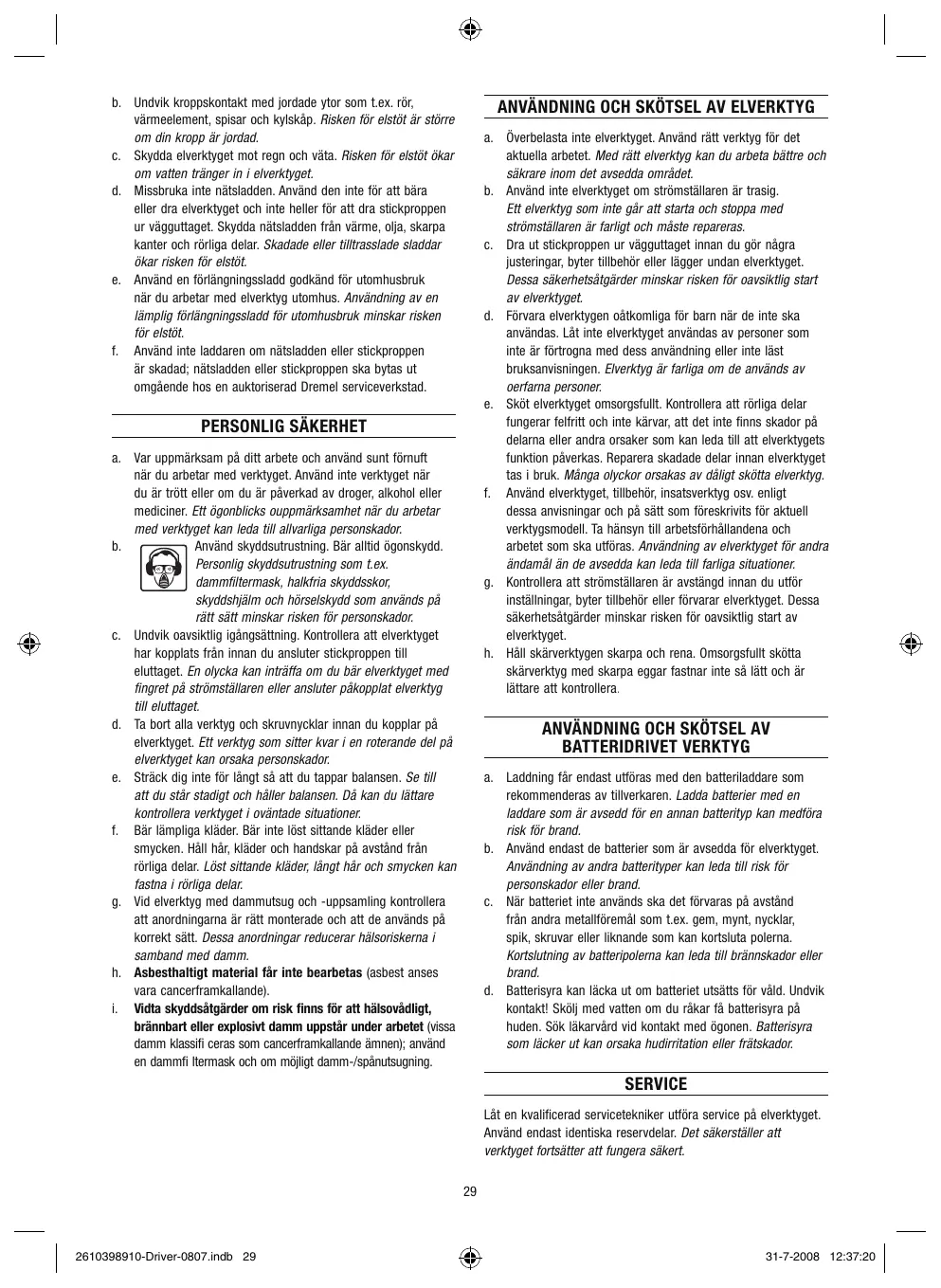 DRIVER - Roterande verktyg DREMEL - Notice d'utilisation et mode d'emploi gratuit