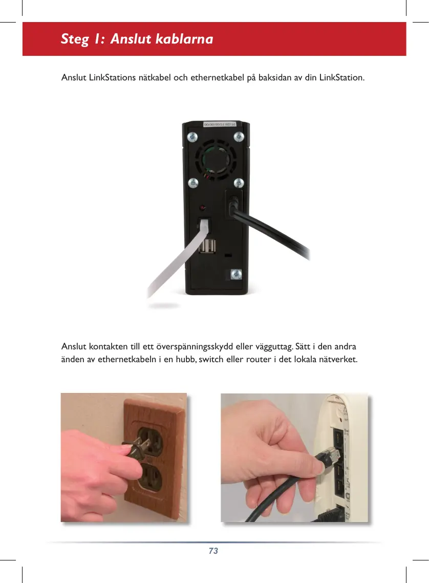 Steg 1: Anslut kablarna Anslut LinkStations nätkabel och ethernetkabel på baksidan av din LinkStation.