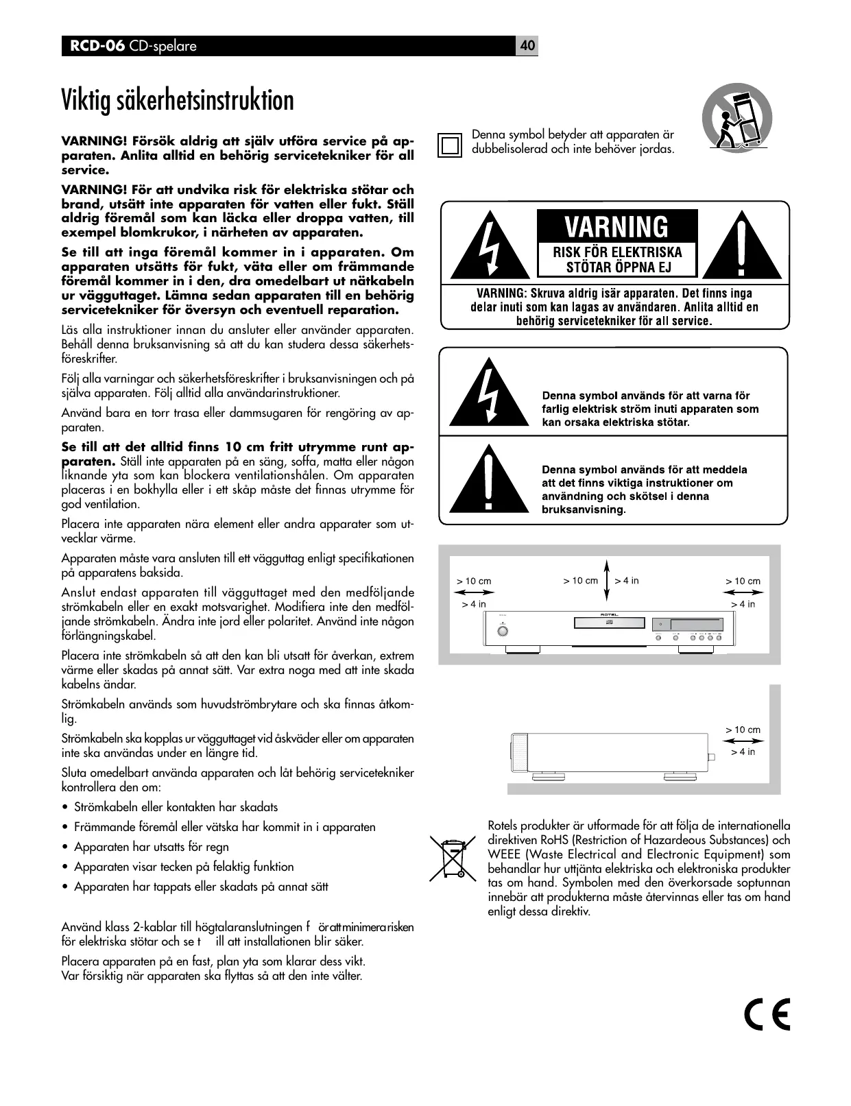 BRUKSANVISNING RCD-06 ROTEL