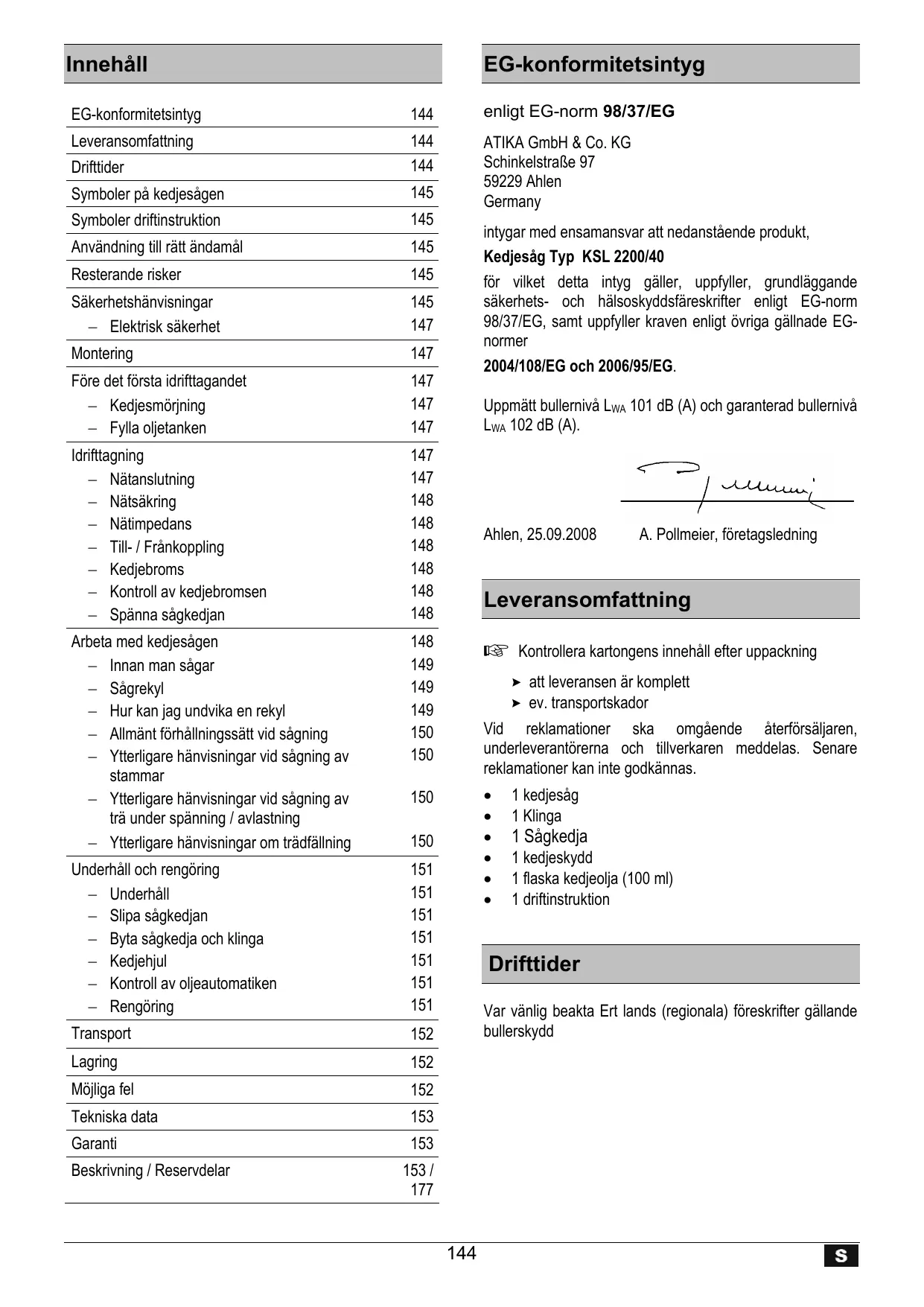 enligt EG-norm 98/37/EG ATIKA GmbH & Co. KG SchinkelstraRe 97 59229 Ahlen