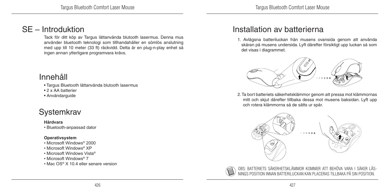 BLUETOOTH COMFORT LASER MOUSE - Bluetooth-mus TARGUS - Notice d'utilisation et mode d'emploi gratuit