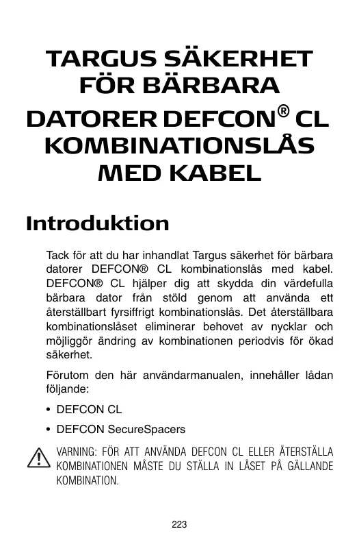 BRUKSANVISNING NOTEBOOK SECURITY DEFCON CL TARGUS