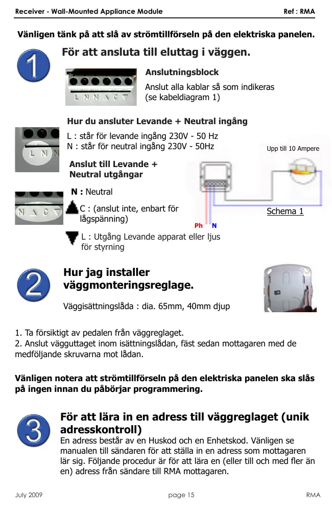 En adress bestär av en Huskod och en Enhetskod. Vänligen se manualen till sändaren for att ställa in en adress som mottagaren lär sig. Foljande procedur für att lara en (eller till och med fler anen) adress frän sändare till RMA mottagaren.