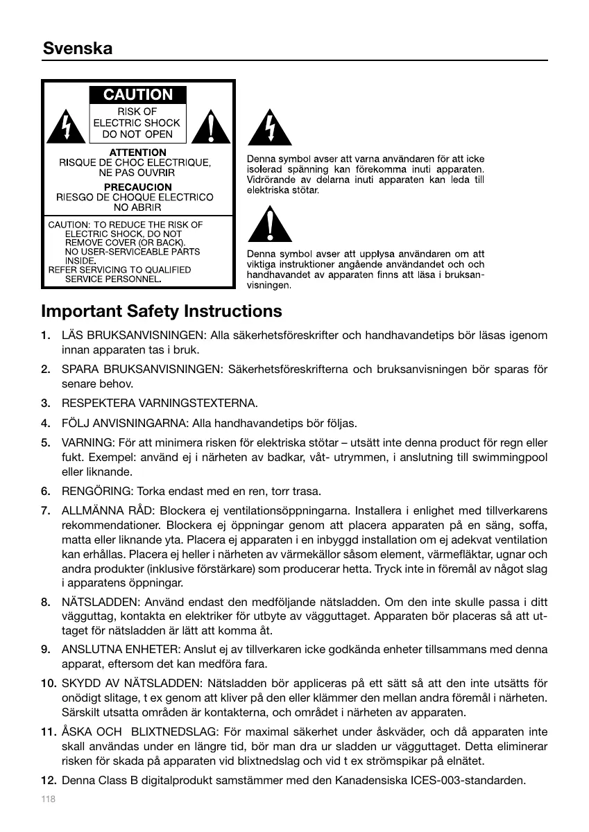 12. Denna Class B digitalprodukt samstämmer med den Kanadensiska ICES-003-standarden.