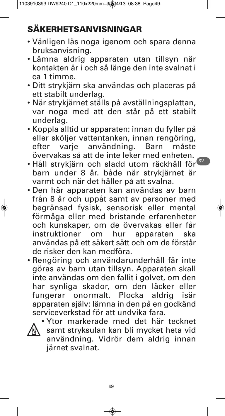 Téléchargez la notice de votre Strykjärn au format PDF gratuitement ! Retrouvez votre notice DW9240D1 STEAMFORCE - ROWENTA et reprennez votre appareil électronique en main. Sur cette page sont publiés tous les documents nécessaires à l'utilisation de votre appareil DW9240D1 STEAMFORCE de la marque ROWENTA.