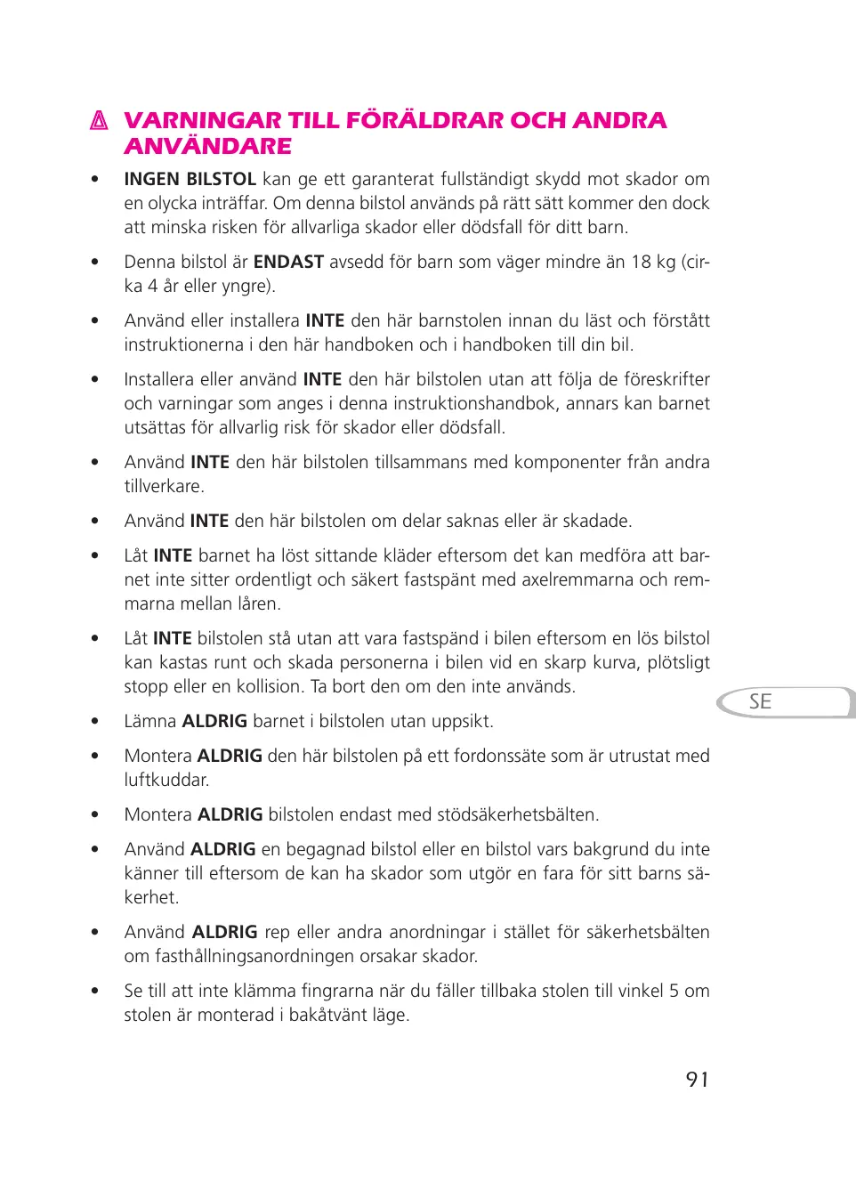 läs instruktionerna noga innan du installerar barnbilstolen
