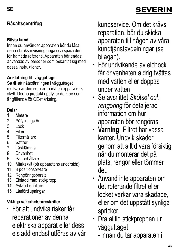 BRUKSANVISNING ES3566 SEVERIN