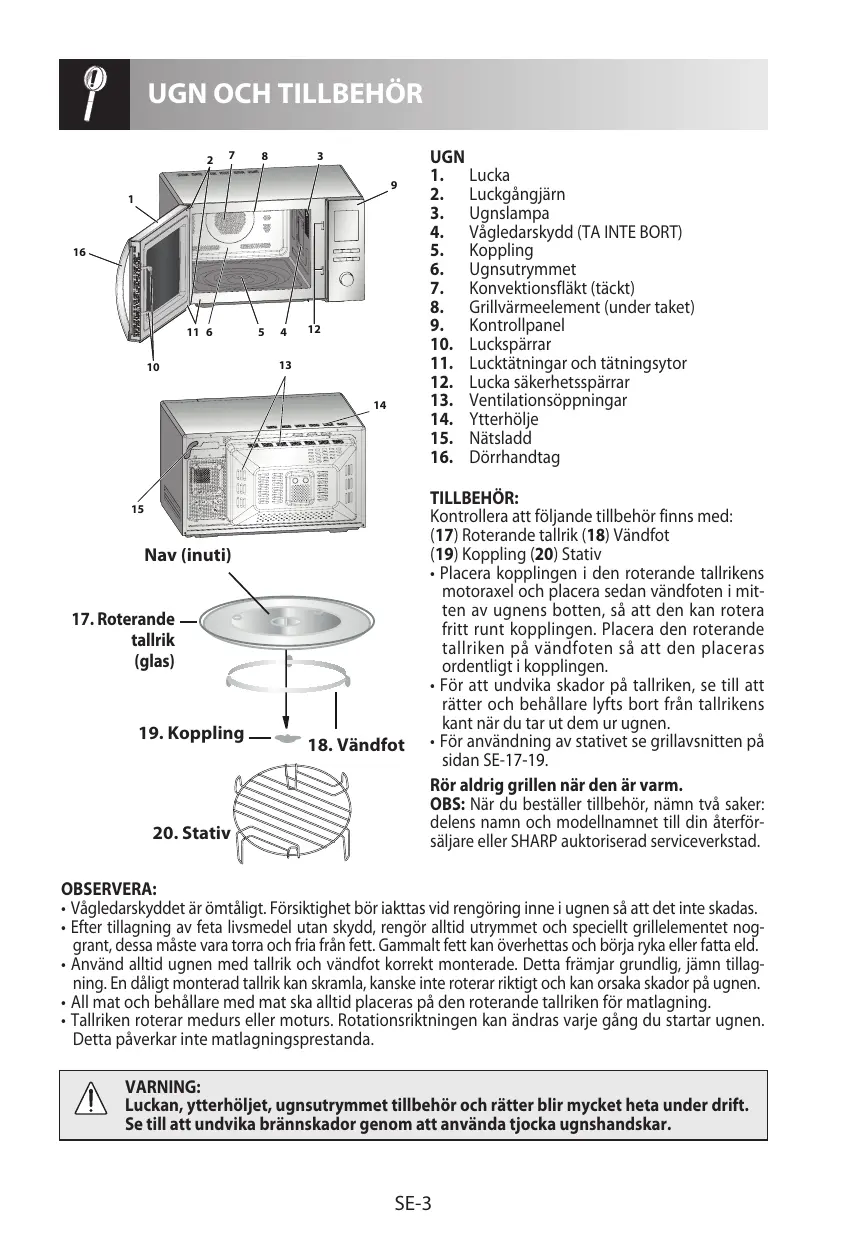Ne touchez jamais la grille lorsqu'elle est chaude. REMARQUE : Lorsque vous passez une commande d’accessoires, veuillez mentionner au revendeur ou au service d’ entretien agréé par SHARP le nom des pièces et du modèle.