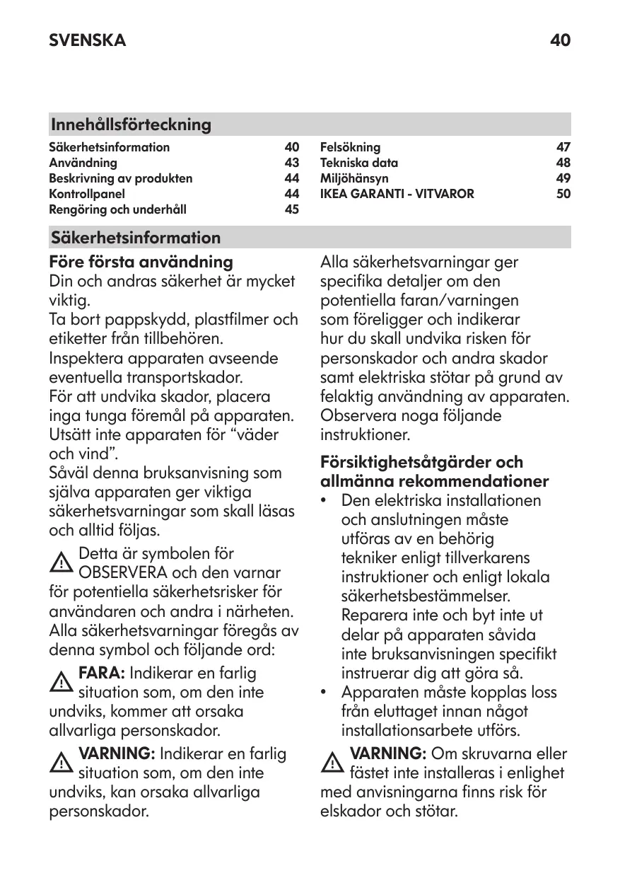 BRUKSANVISNING FINSMAKARE IKEA