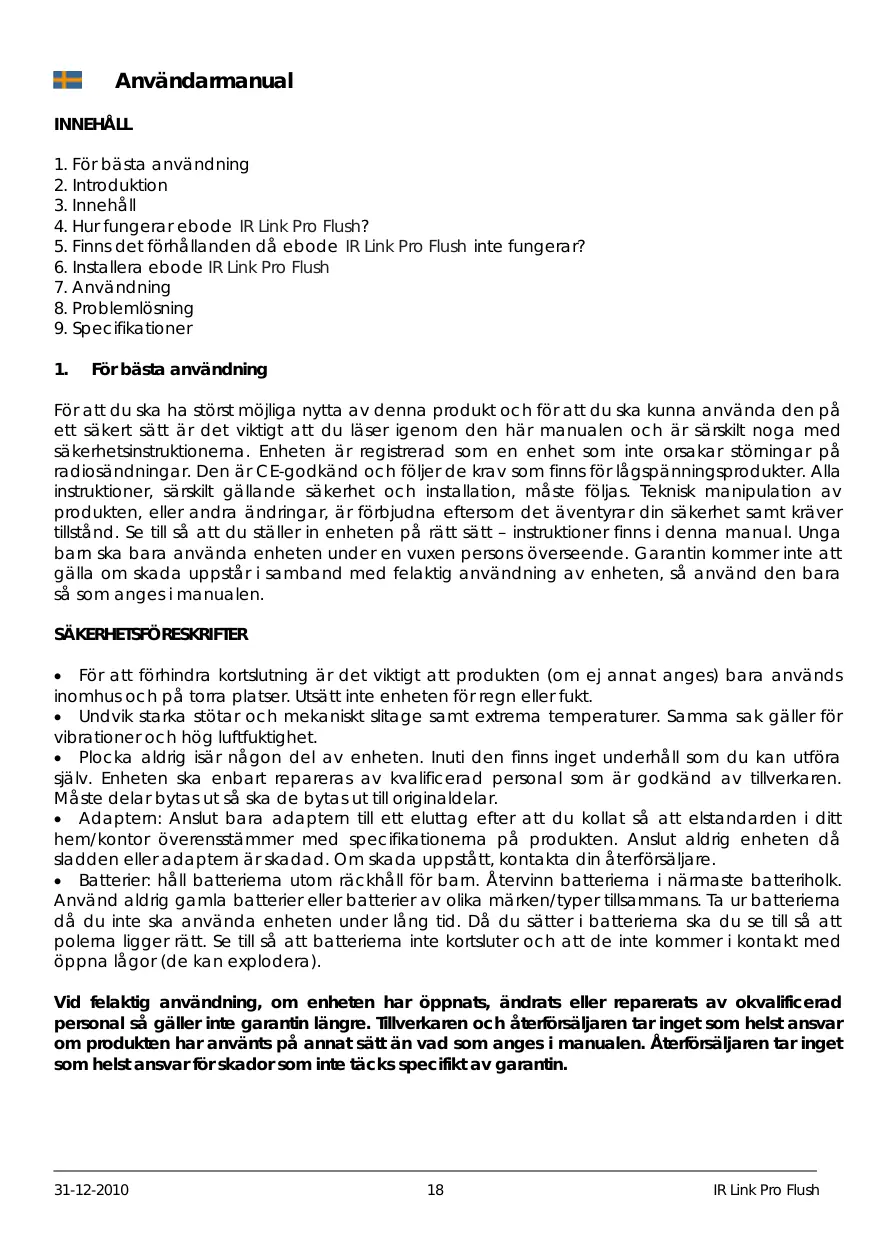 BRUKSANVISNING IR LINK FLUSH EBODE