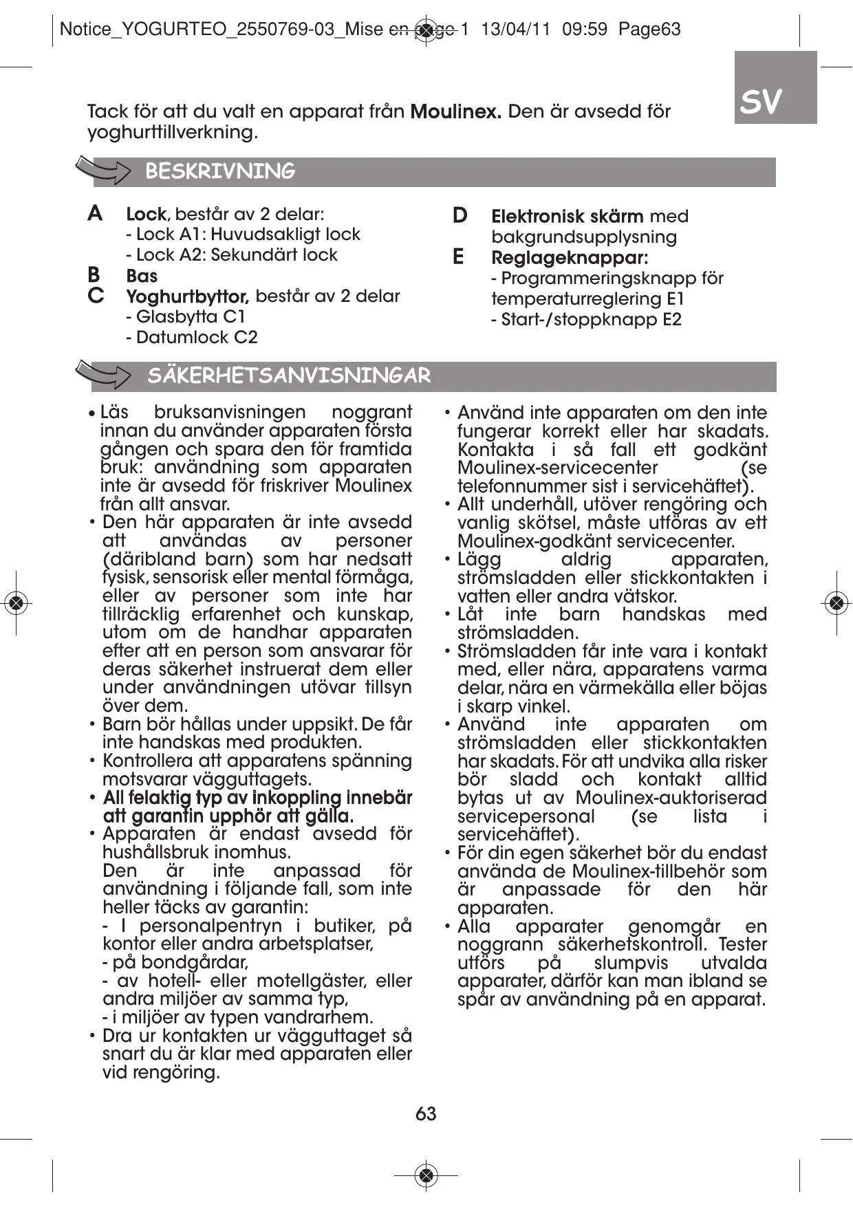 BRUKSANVISNING YOGURTEO YG231E32 MOULINEX