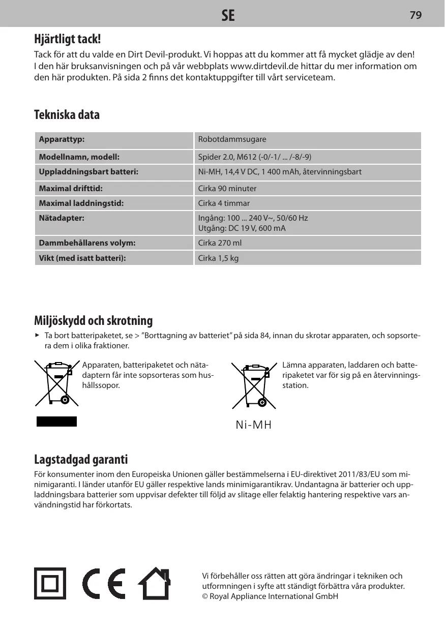 BRUKSANVISNING SPIDER 2,0 TRACKER M613 DIRT DEVIL