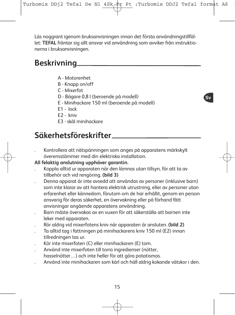 Turbomix DDj2 Tefal De Nl 4Sk Fr Pt :Turbomix DDJ2 Tefal format A6