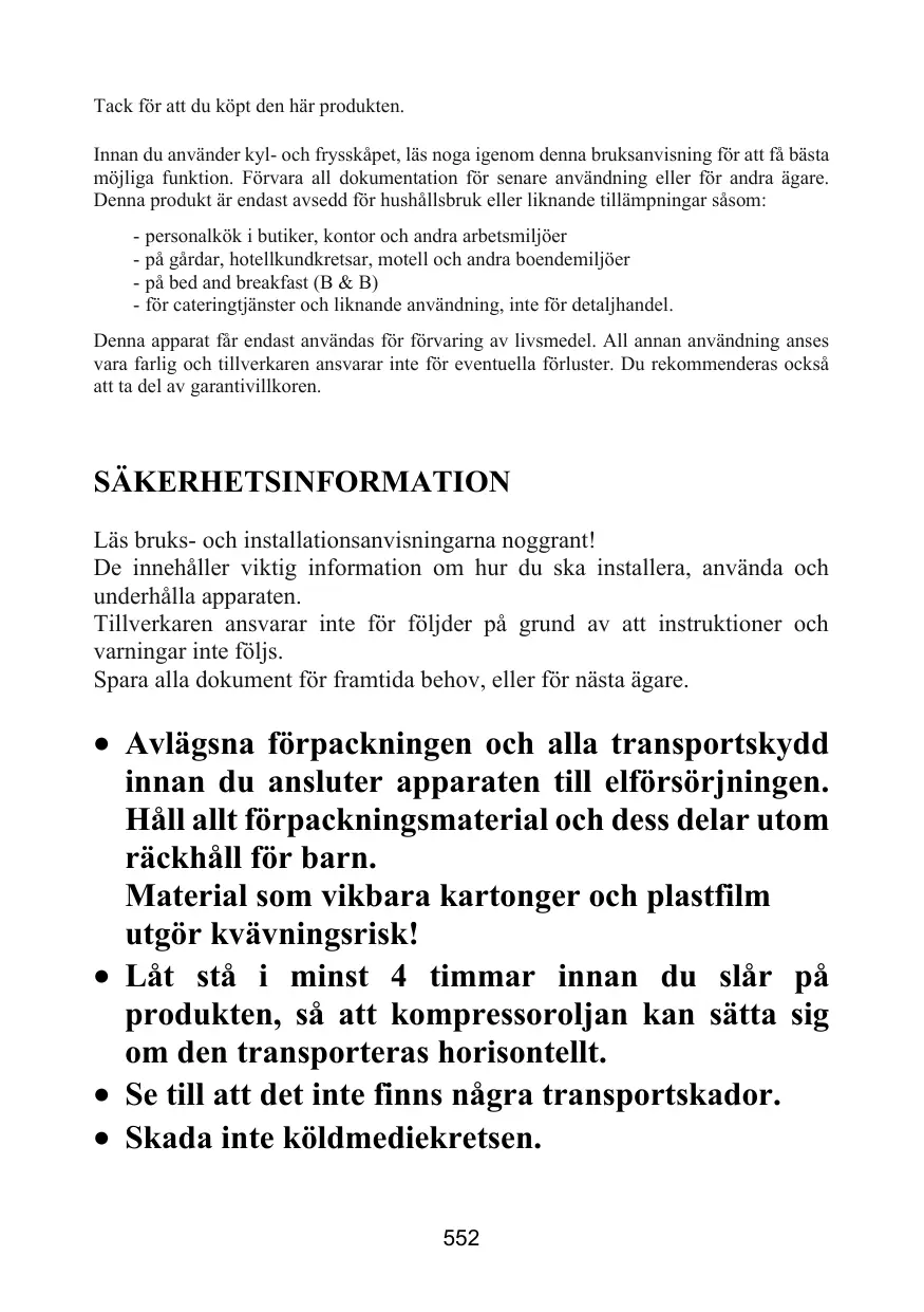 - dans les exploitations agricoles, pour la clientèle des hôtels, motels et autres environnements de type résidentiel - dans les hébergements Bed and Breakfast (B & B) - pour les services de restauration et des applications similaires non destinées à une vente au détail. Cet appareil doit être utilisé uniquement à des fins de conservation d'aliments, toute autre utilisation est considérée comme dangereuse et le fabricant ne sera pas responsable de toute omission. De plus, il est recommandé de prendre note des conditions de garantie.