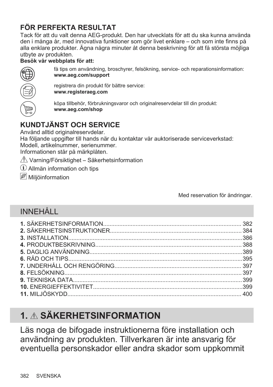 Avant de contacter notre centre de service agréé, assurez-vous de disposer des informations suivantes : Modèle, PNC, numéro de série. Ces informations figurent sur la plaque signalétique. Avertissement/Consignes de sécurité Informations générales et conseils Informations environnementales Sous réserve de modifications.