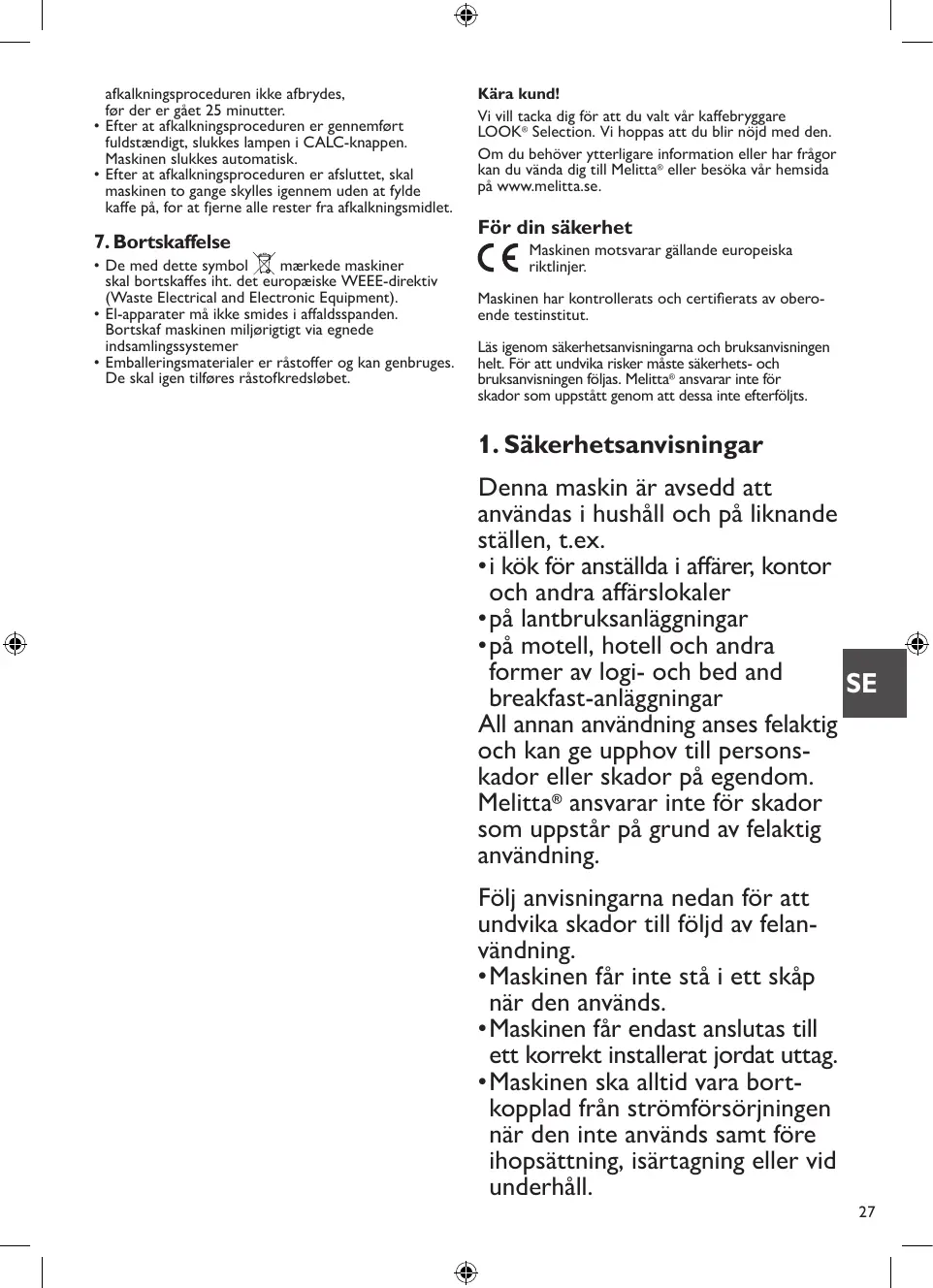 BRUKSANVISNING LOOK IV SELECTION MELITTA