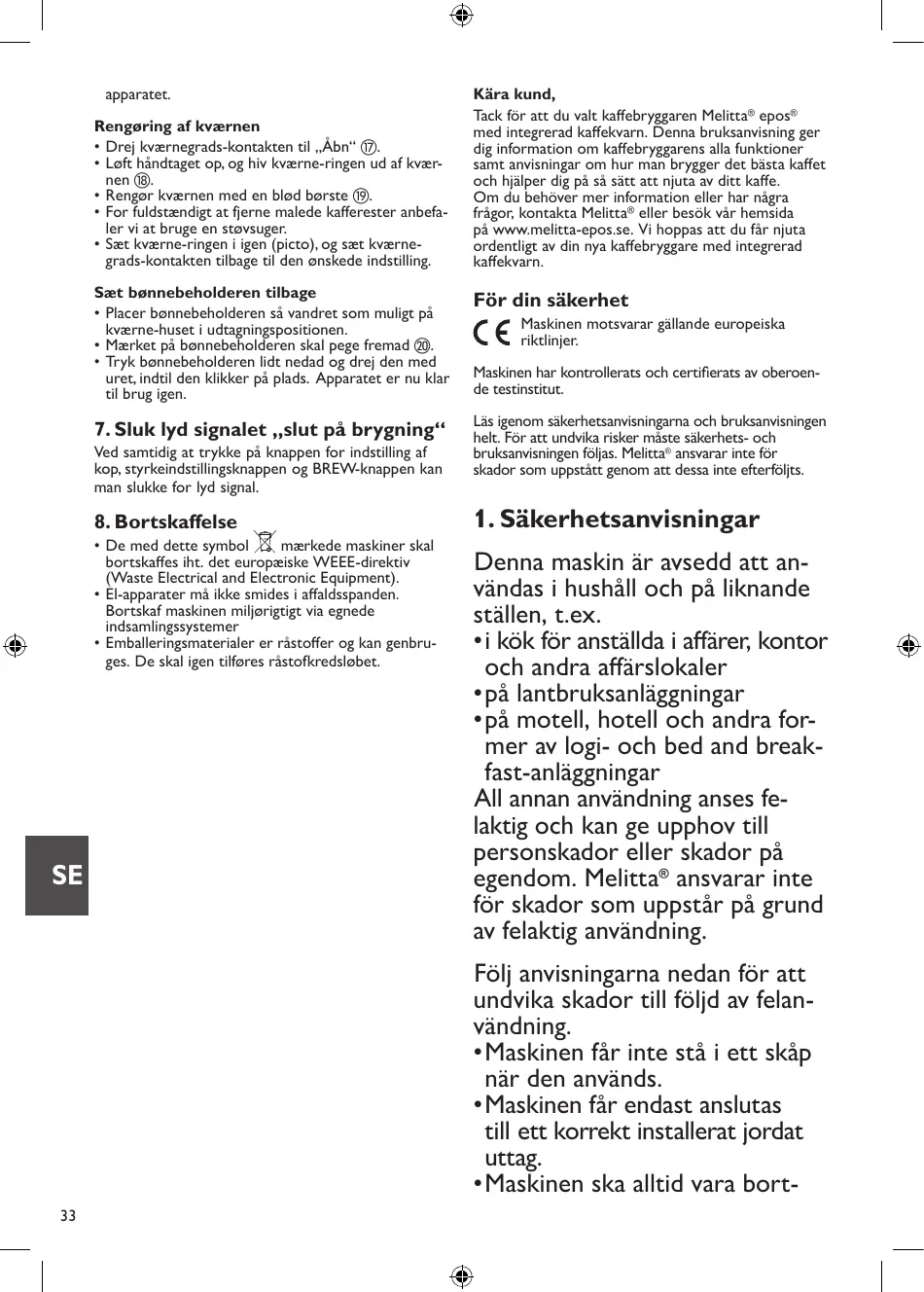 Téléchargez la notice de votre Kaffemaskin au format PDF gratuitement ! Retrouvez votre notice EPOS 1024-01 - MELITTA et reprennez votre appareil électronique en main. Sur cette page sont publiés tous les documents nécessaires à l'utilisation de votre appareil EPOS 1024-01 de la marque MELITTA.