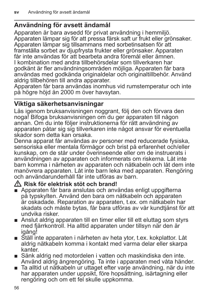 WWRisques de blessures –– N’utiliser l’appareil que lorsqu’il est entièrement assemblé. –– Ne pas utiliser l’appareil sans que le couvercle soit mis et enclenché. –– Ne jamais mettre les doigts dans l’orifice de remplissage. Pour cela, utiliser uniquement le pilon poussoir fourni ! Attention ! Pour le traitement des fruits surgelés, utiliser uniquement la sorbetière. Ne pas traiter de fruits qui deviennent très durs suite à la congélation (p. ex.les fraises).