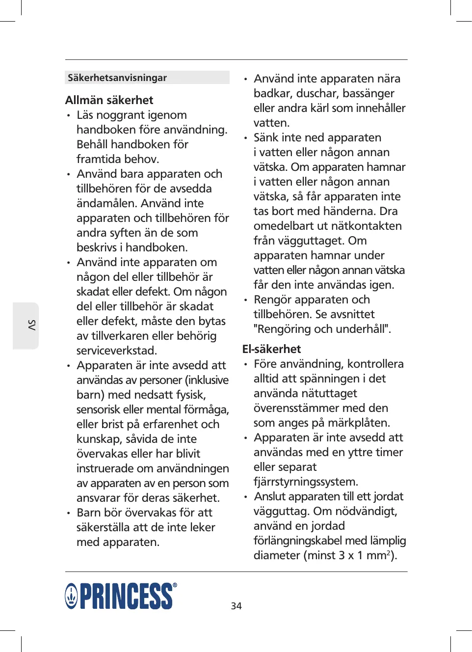 BRUKSANVISNING 127004.01.001 PRINCESS