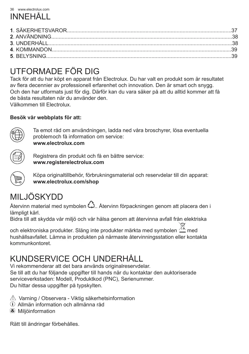 Recevoir des conseils d’utilisation, télécharger nos brochures, résoudre des problèmes éventuels et obtenir des renseignements sur le service après-vente: www.electrolux.com Enregistrer votre produit et obtenir un meilleur service: www.registerelectrolux.com Acheter des accessoires, des consommables et des pièces de rechange d’origine pour votre appareil: www.electrolux.com/shop