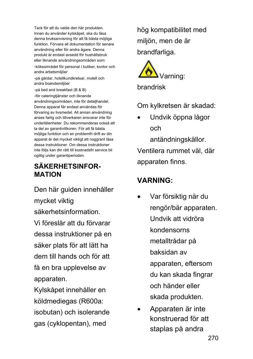 • Ne pas utiliser de dispositifs mécaniques ou d'autre équipement pour accélérer le processus de dégivrage. • Éviter impérativement l'utilisation de flamme nue ou d’un équipement électrique, comme des radiateurs, des nettoyeurs à vapeur, des bougies, des lampes à pétrole ou similaires pour accélérer la phase de dégivrage.