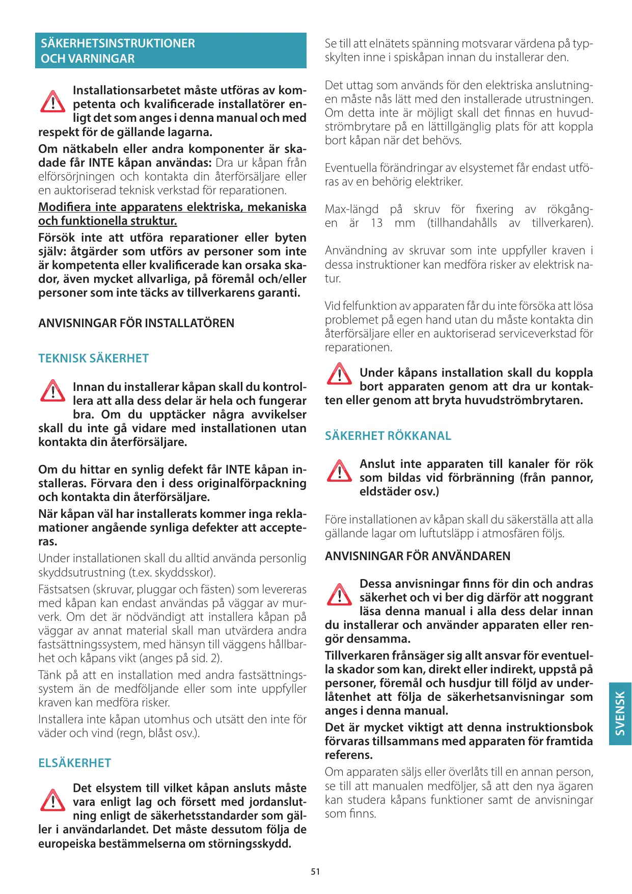 Avant d’effectuer l'installation de la hotte, lire attentivement le chap. « CONSIGNES DE SÉCURITÉ ET MISES EN GARDE ».