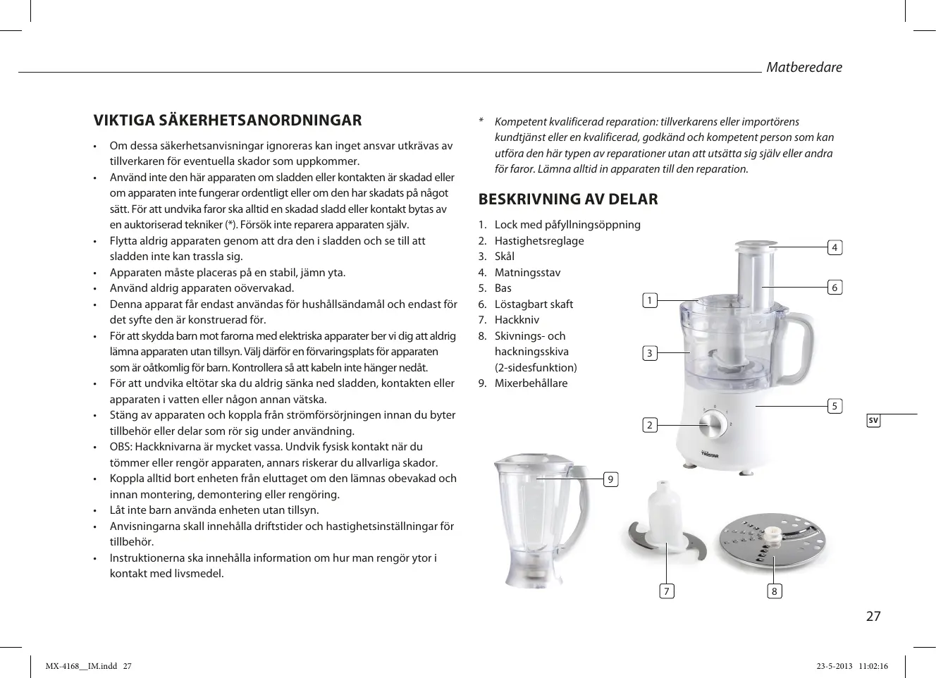BRUKSANVISNING MX-4168 TRISTAR