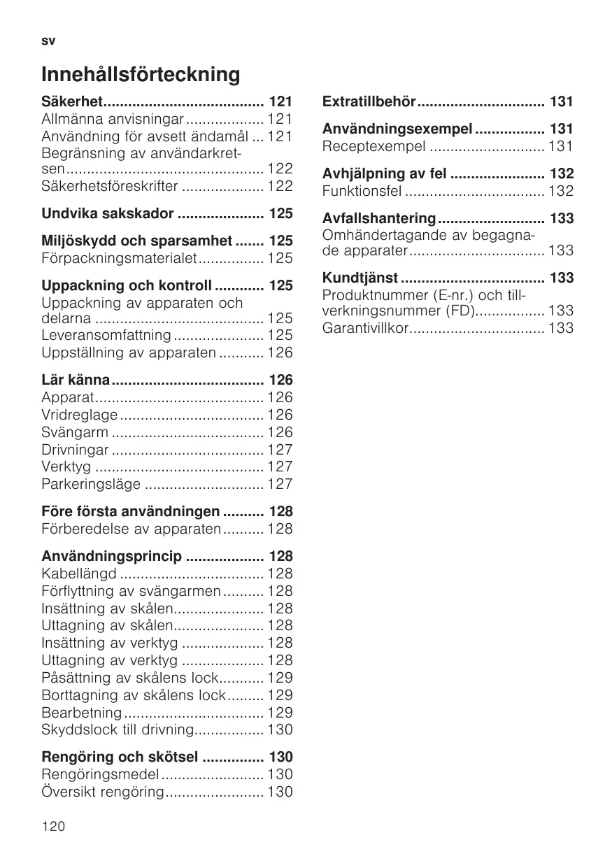 Safety 26 General information 26 ▶ Switch on the appliance only if all preparations are complete and the swivel arm is engaged in the position described. Contenu de la livraison 46 Installer l’appareil 47 Description de l'appareil 47 Appareil 47 Interrupteur rotatif 47 Retirer le bol mélangeur 50 Mettre un ustensile en place 50 Retirer l’ustensile 50 Mettre le couvercle du bol mélangeur en place 50 Retirer le couvercle du bol mélangeur 50 Traitement 51