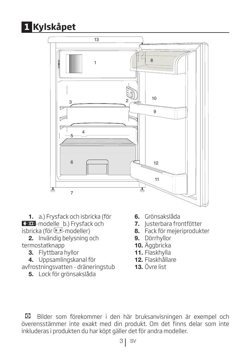 C Bilder som förekommer i den här bruksanvisningen är exempel och överensstämmer inte exakt med din produkt. Om det finns delar som inte inkluderas i produkten du har köpt gäller det för andra modeller. 3
