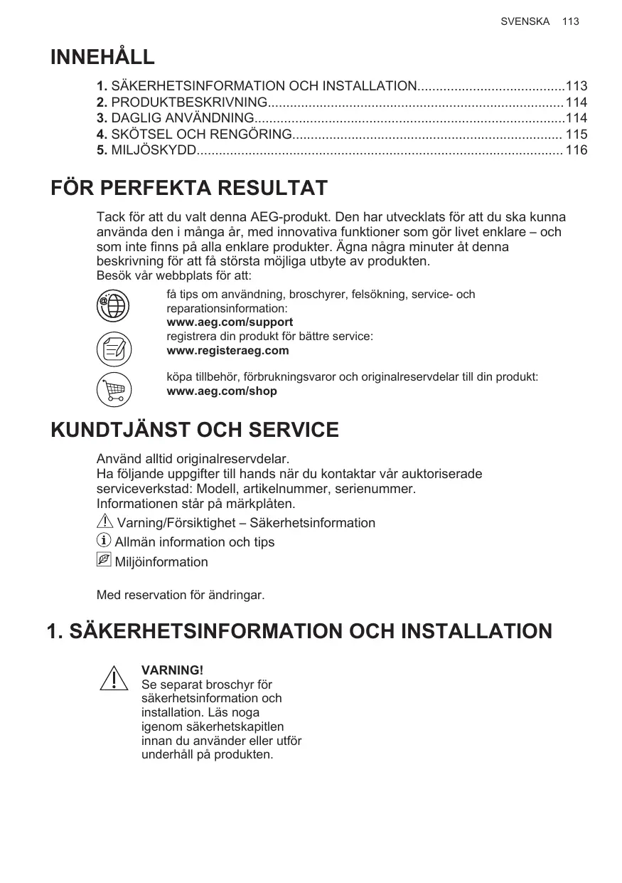 Enregistrer votre produit pour un meilleur service : www.registeraeg.com Acheter des accessoires, consommables et pièces de rechange d’origine pour votre appareil : www.aeg.com/shop