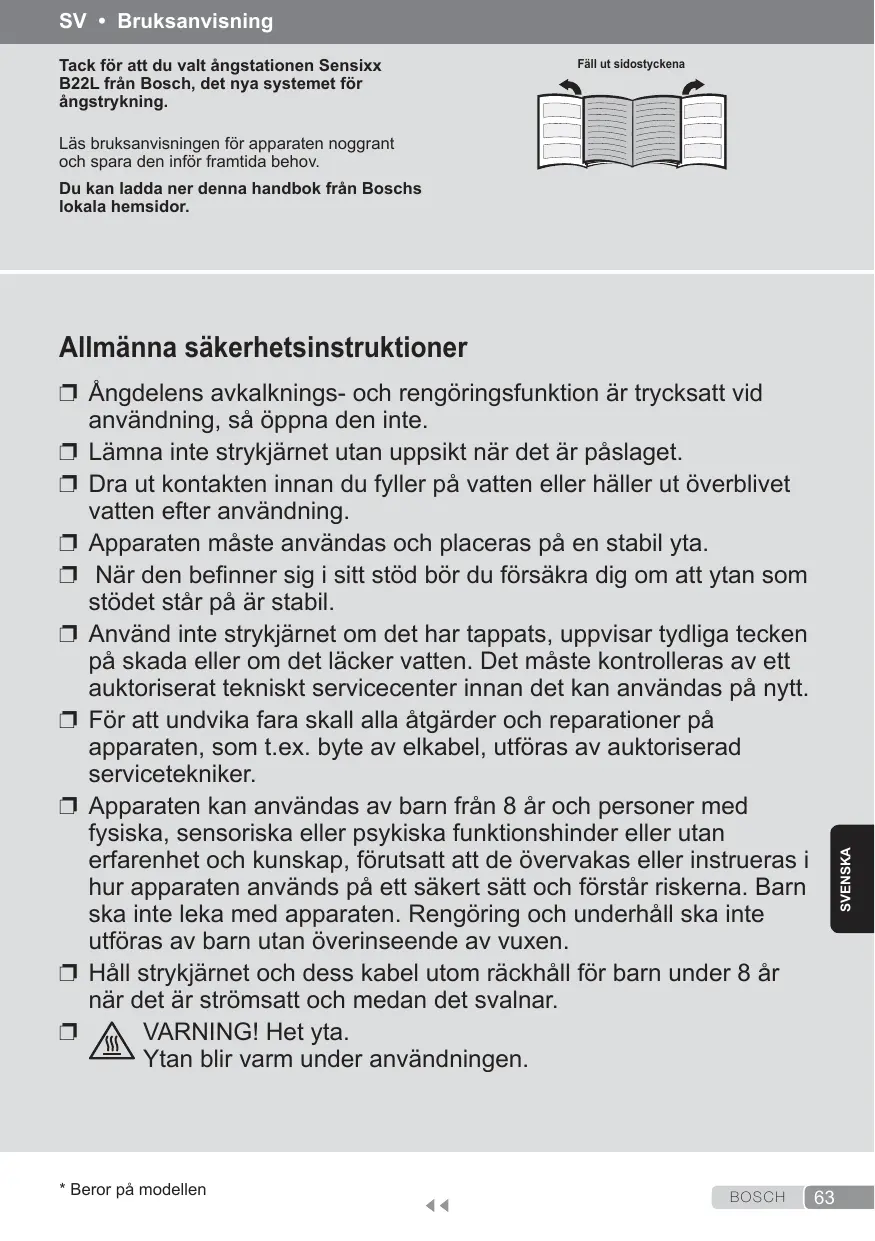 SENSIXX B22L - Strykjärn BOSCH - Gratis bruksanvisning och manual