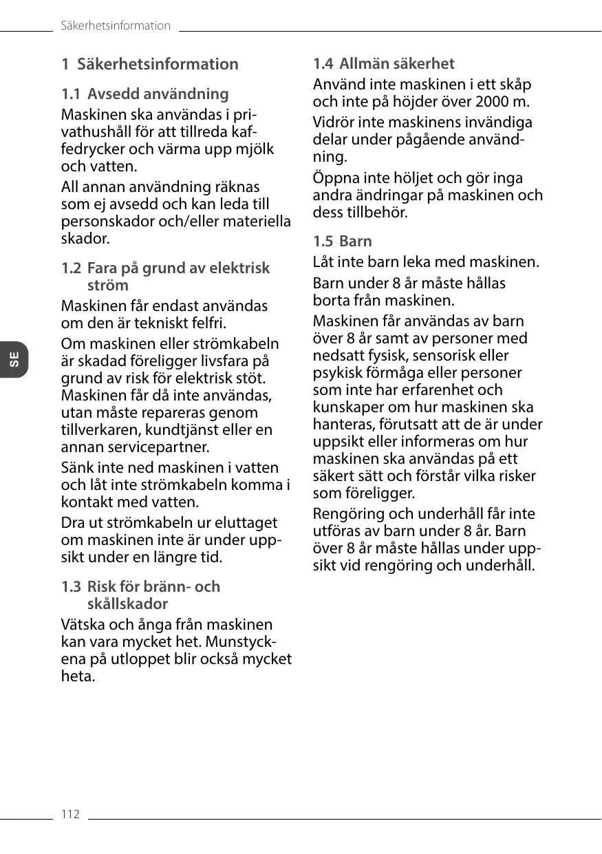 Un appareil et/ou un cordon d’alimentation endommagés présentent des dangers de mort par choc électrique. Il est interdit d’utiliser l’appareil dans ce cas : vous devez le faire réparer par le fabricant, le service après-vente ou un distributeur. Ne pas plonger l’appareil dans l’eau ou éviter que le cordon d’alimentation n’entre en contact avec de l’eau. Débrancher l’appareil s’il reste sans surveillance de manière prolongée. 1.3 Risque de brûlure et d’éclaboussures Les liquides et les vapeurs qui s’échappent peuvent être brûlants. Les buses du bec verseur peuvent elles aussi devenir très chaudes.