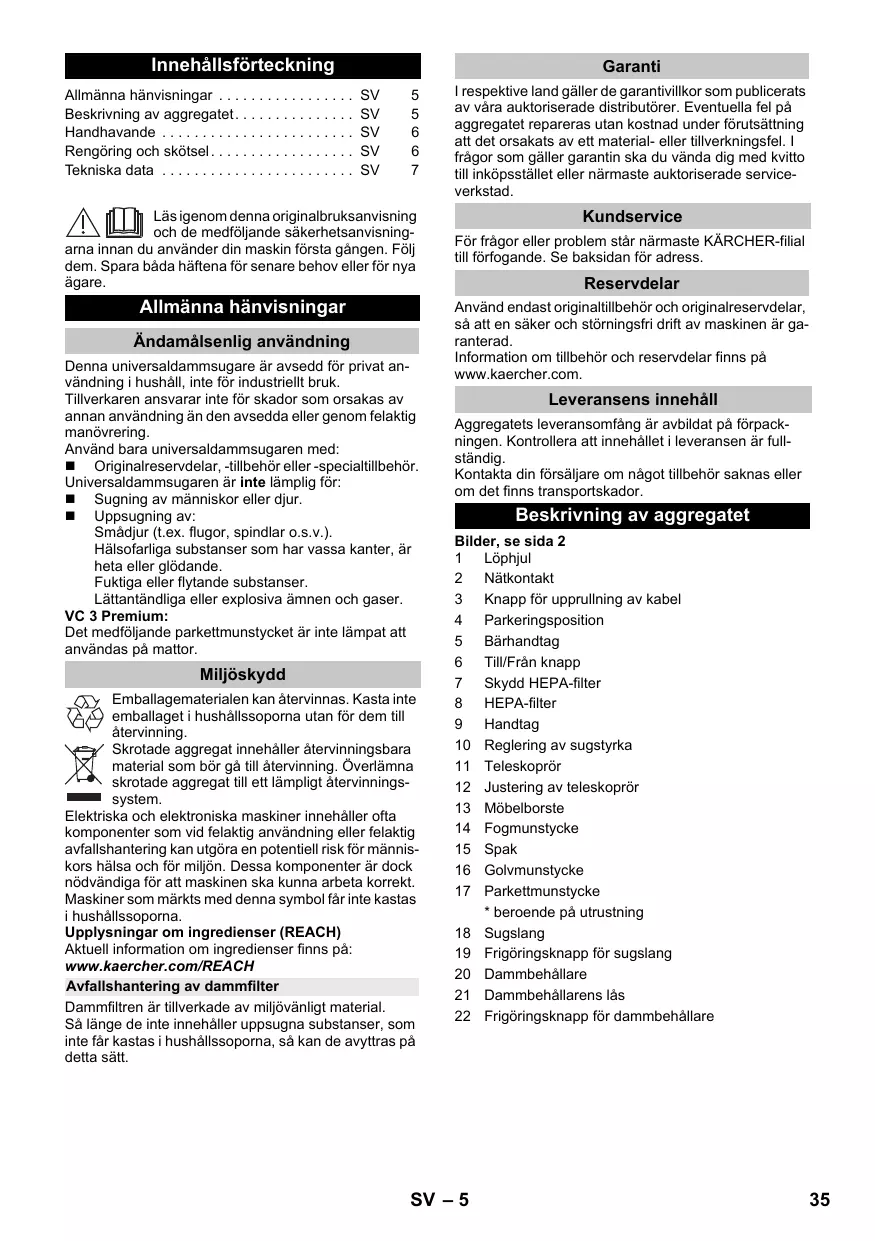 VCS - Cylinderdammsugare KARCHER - Notice d'utilisation et mode d'emploi gratuit