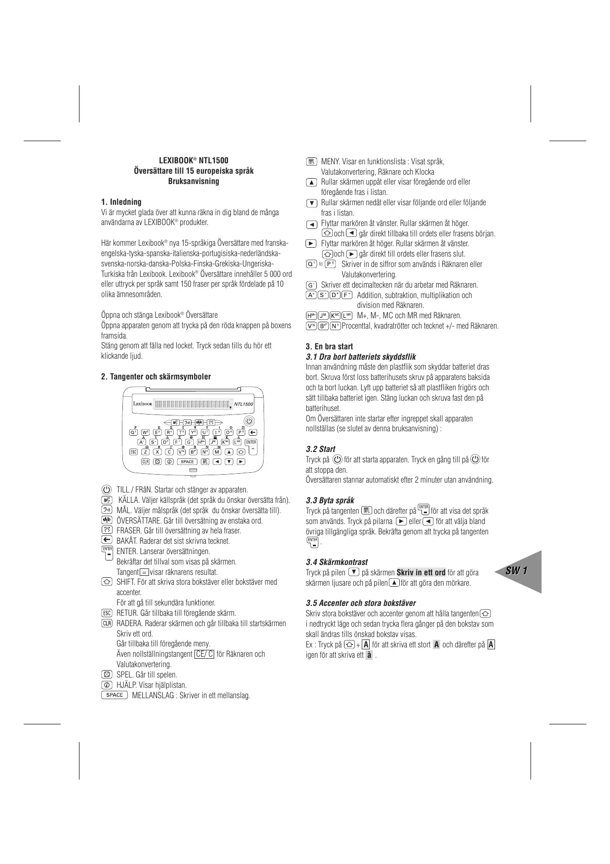 LfNTL 1500 - Elektronisk översättare LEXIBOOK - Notice d'utilisation et mode d'emploi gratuit