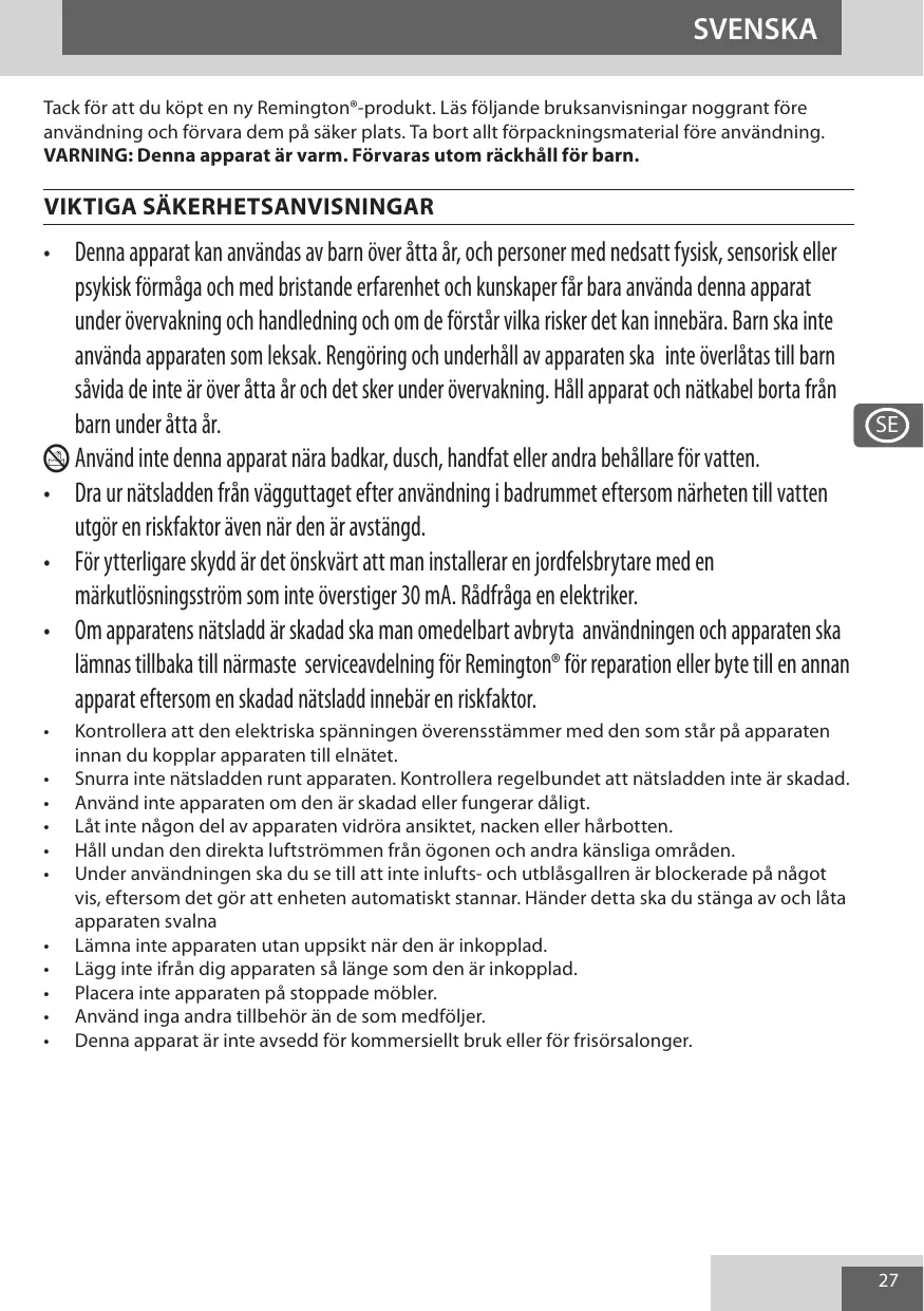 Téléchargez la notice de votre Hårtork au format PDF gratuitement ! Retrouvez votre notice D6077 - REMINGTON et reprennez votre appareil électronique en main. Sur cette page sont publiés tous les documents nécessaires à l'utilisation de votre appareil D6077 de la marque REMINGTON.