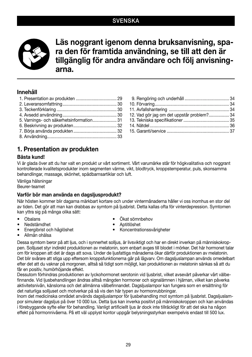 BRUKSANVISNING TL41 touch BEURER