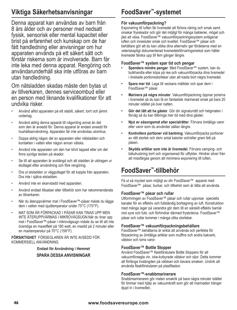 FFS013X - Soude sac FOOD SAVER - Notice d'utilisation et mode d'emploi gratuit