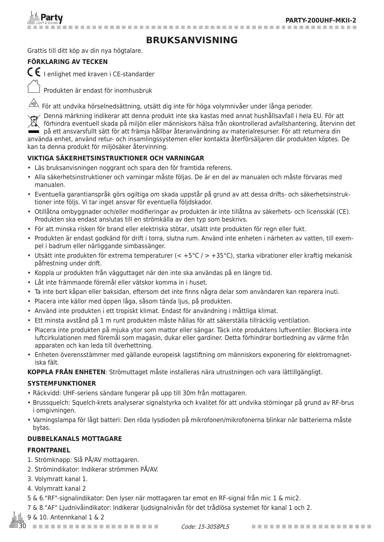 BRUKSANVISNING PARTY-200UHF PARTY LIGHT&SOUND