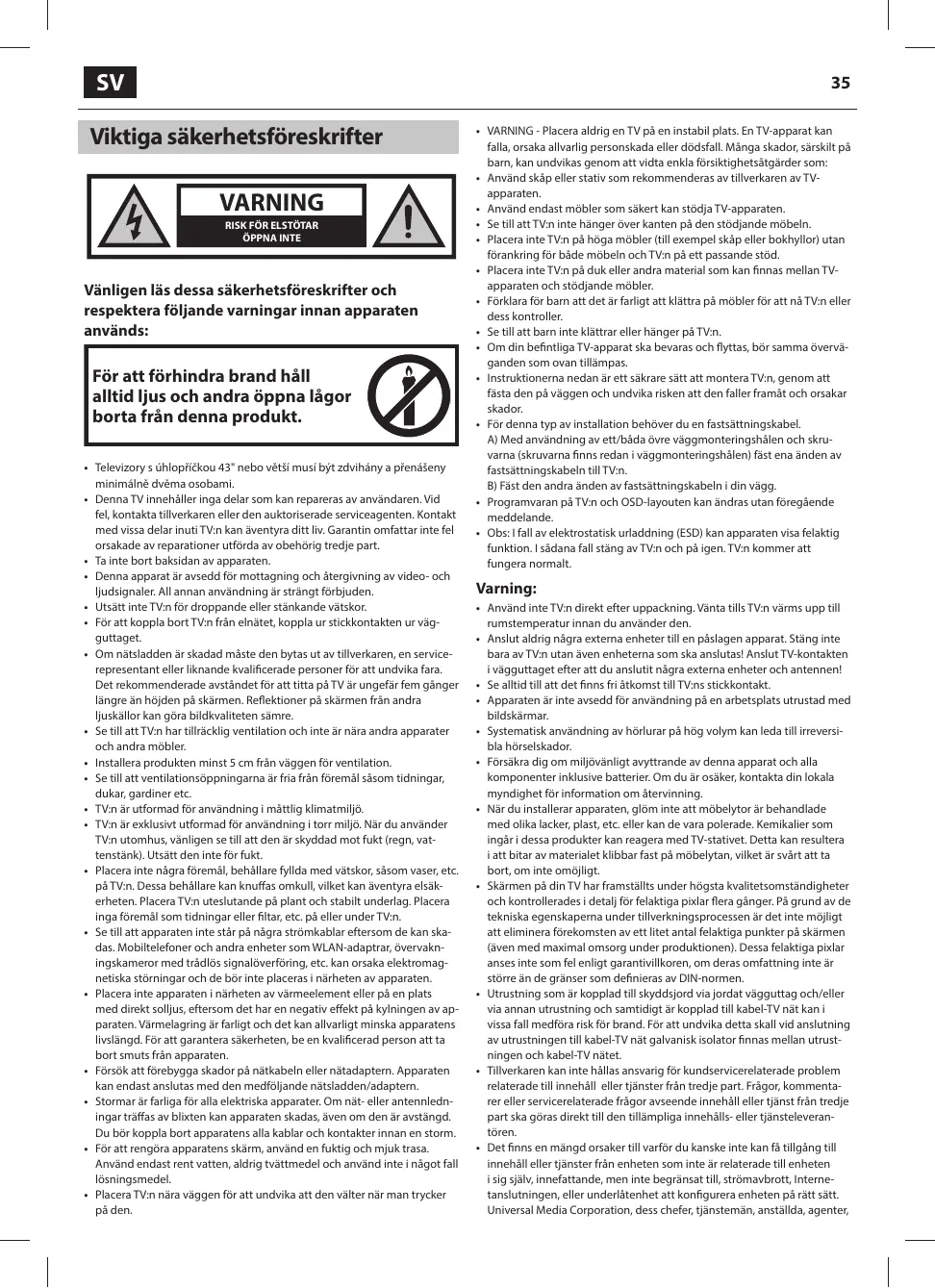 Ne placez pas d'objets, de récipients remplis de liquide, comme des vases, ete. sur la télévision. Ces récipients pourraient tre renversés, ce qui mettrait en danger la sécurité électrique. Placer la TV exclusivement sur des surfaces plates et stables, Ne placer aucun objet tel qu'un journal ou une couverture, etc. sur ou sous la TV.