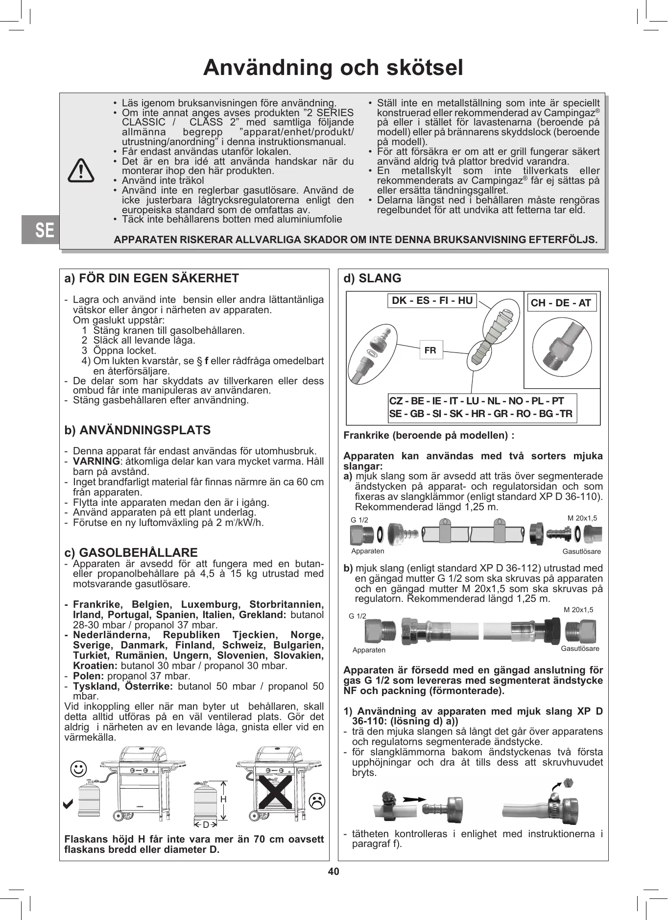 BRUKSANVISNING 2 SERIES Classic LX Plus Vario CAMPINGAZ