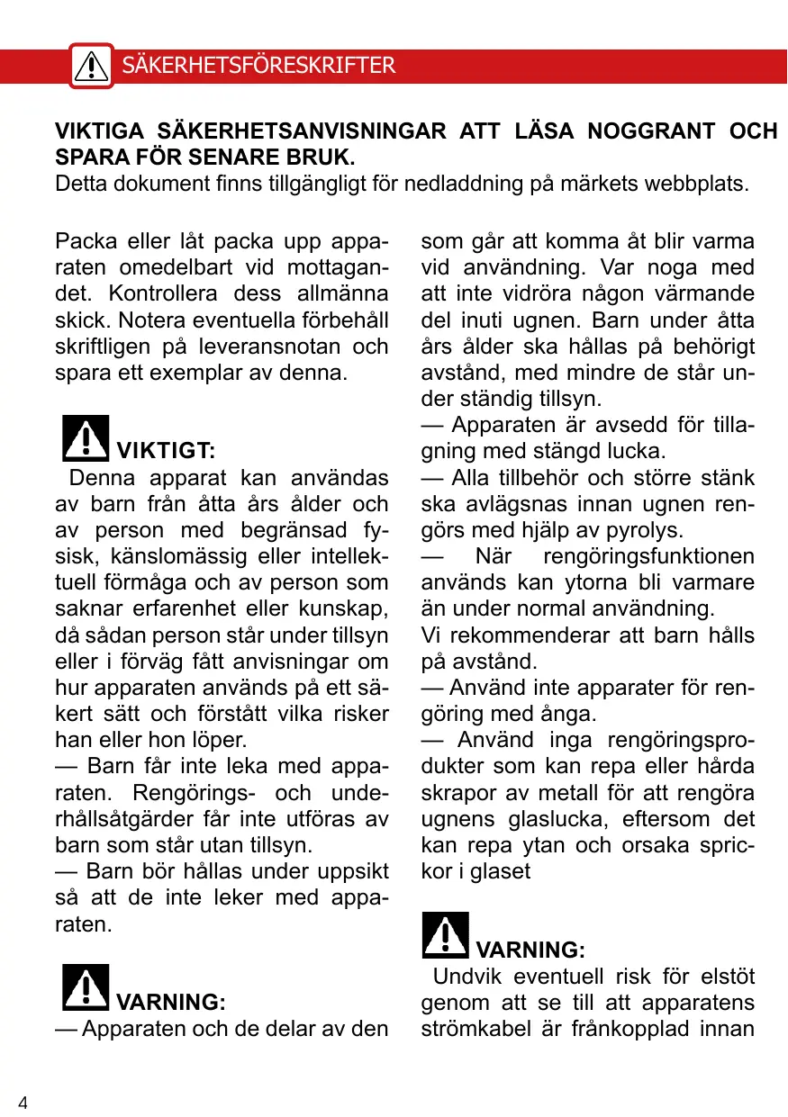 * Avant de procéder à un net- toyage pyrolyse de votre four, reti- rez tous les accessoires et enlevez les éclaboussures importantes.