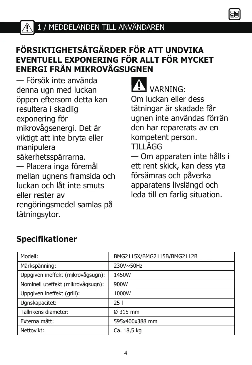 BRUKSANVISNING BMG2115B BRANDT
